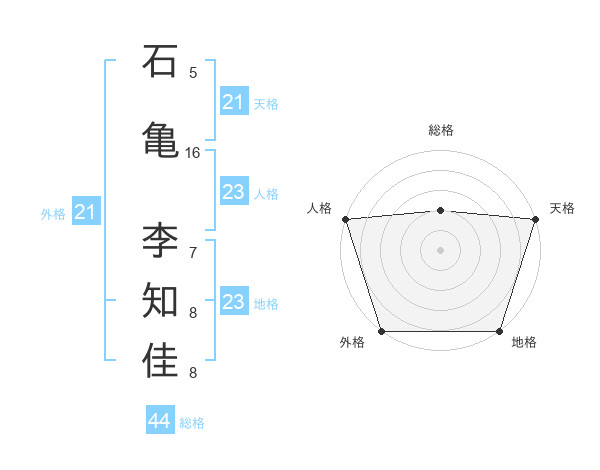 石亀 李知佳さんを姓名の画数から五運を鑑定