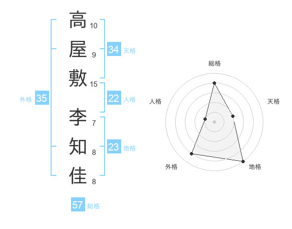 高屋敷 李知佳さんの総格は57画の4点!