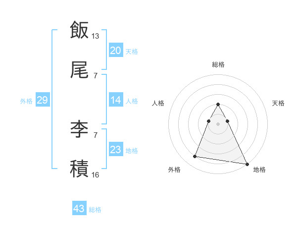 飯尾 李積さんを姓名の画数から五運を鑑定