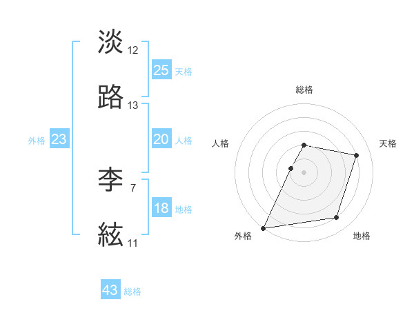 淡路 李絃さんを姓名の画数から五運を鑑定