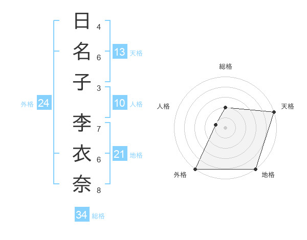 日名子 李衣奈さんを姓名の画数から五運を鑑定