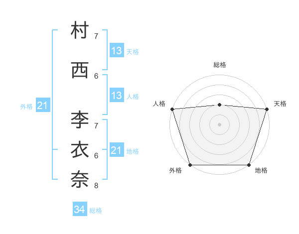 村西 李衣奈さんの天格は13画の5点!
