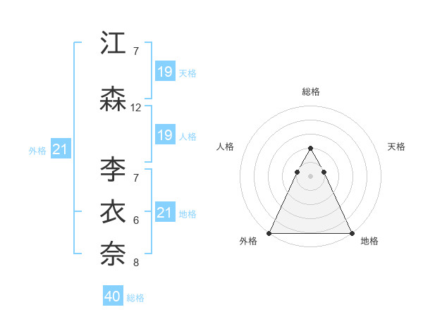 江森 李衣奈さんの総格は40画の2点!