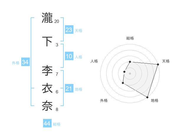 瀧下 李衣奈さんを姓名の画数から五運を鑑定