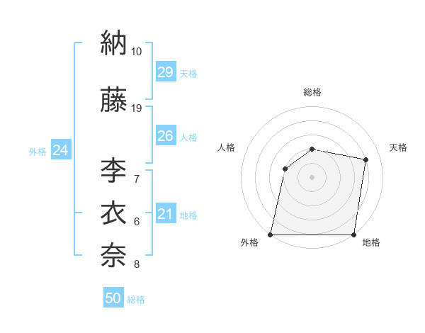 納藤 李衣奈さんの外格は24画の5点!