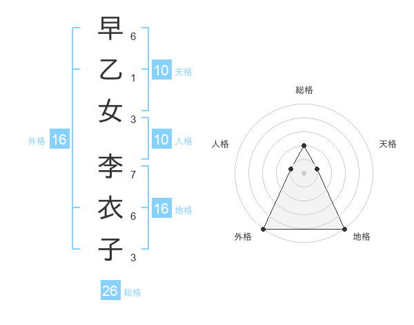 早乙女 李衣子さんを姓名の画数から五運を鑑定