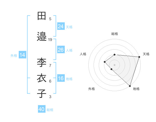 田邉 李衣子さんを姓名の画数から五運を鑑定