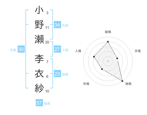 小野瀬 李衣紗さんを姓名の画数から五運を鑑定