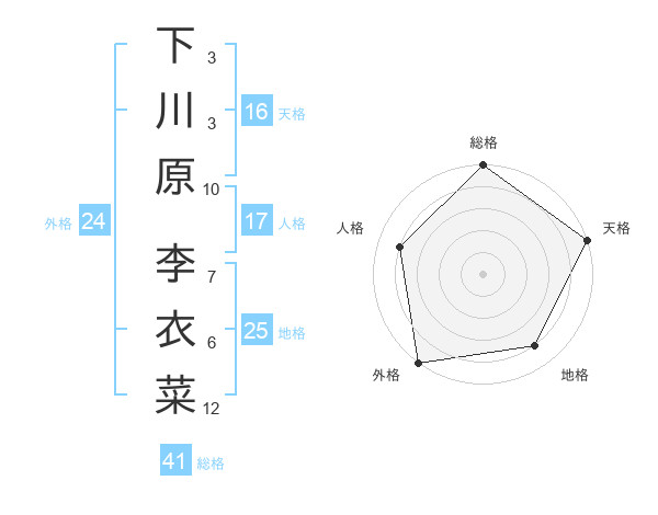 下川原 李衣菜さんを姓名の画数から五運を鑑定