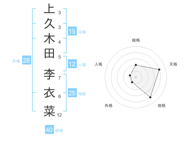上久木田 李衣菜さんを姓名の画数から五運を鑑定