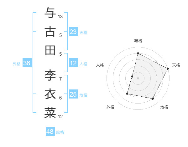 与古田 李衣菜さんを姓名の画数から五運を鑑定