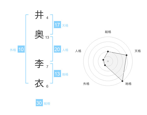 井奥 李衣さんを姓名の画数から五運を鑑定