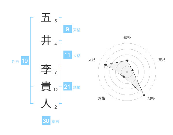 五井 李貴人さんを姓名の画数から五運を鑑定