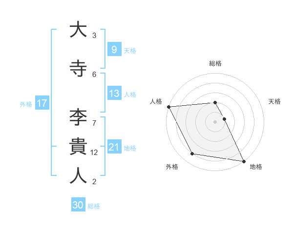 大寺 李貴人さんの総格は30画の2点!