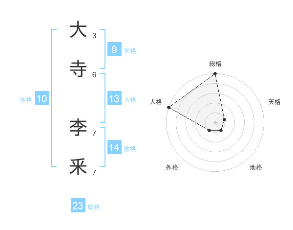 大寺 李釆さんの総格は23画の5点!