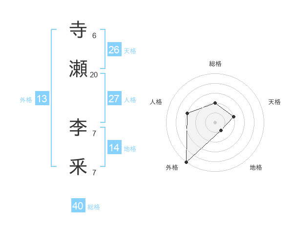寺瀬 李釆さんの外格は13画の5点!