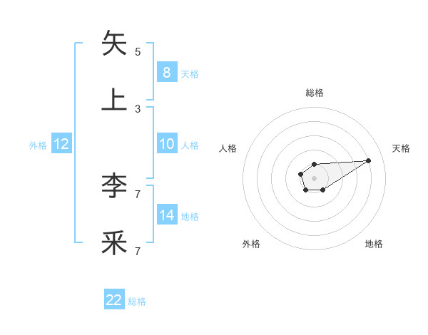 矢上 李釆さんの総格は22画の1点!