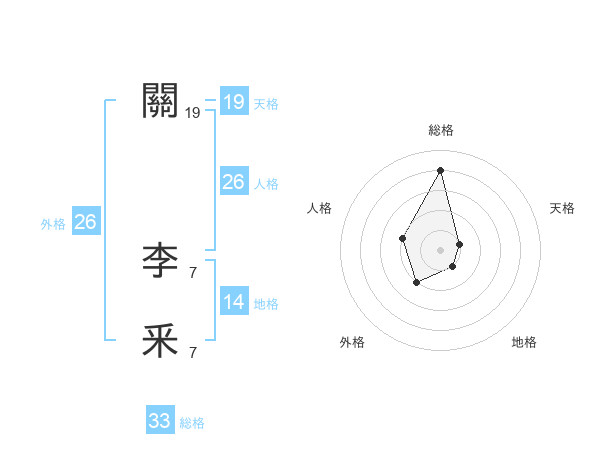 關 李釆さんの総格は33画の4点!