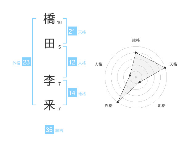橋田 李釆さんを姓名の画数から五運を鑑定