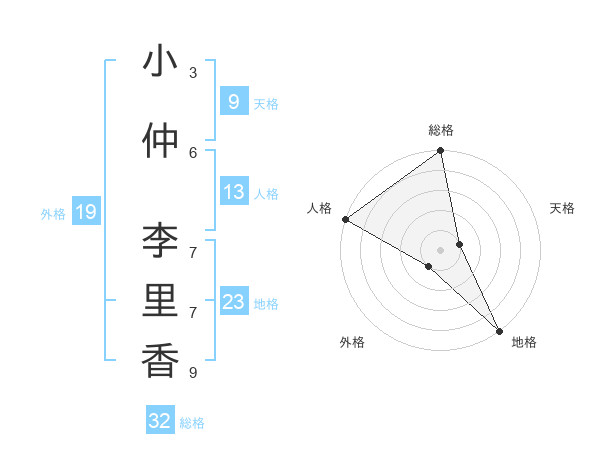 小仲 李里香さんの総格は32画の5点