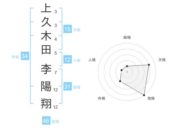 上久木田 李陽翔さんを姓名の画数から五運を鑑定