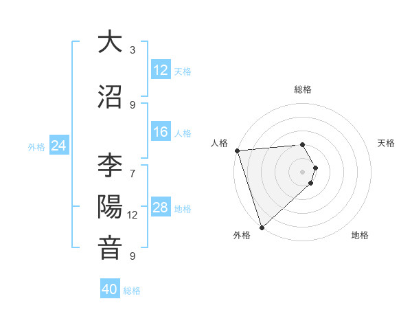 大沼 李陽音さんを姓名の画数から五運を鑑定