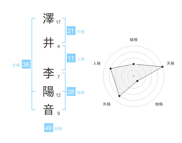 澤井 李陽音さんを姓名の画数から五運を鑑定