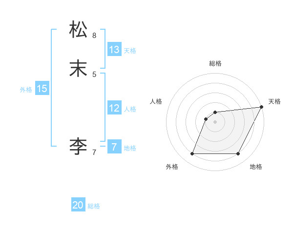 松末 李さんの総格は20画の1点!