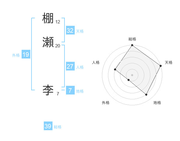 棚瀬 李さんの天格は32画の5点!