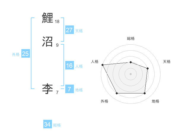 鯉沼 李さんの総格は34画の2点!
