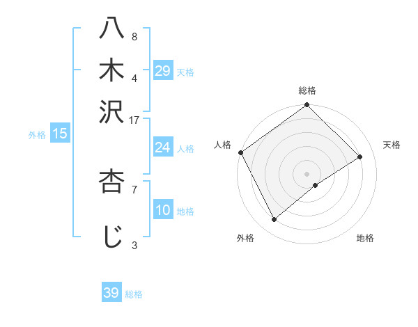 八木沢 杏じさんの総格は39画の5点!