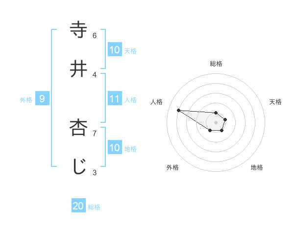 寺井 杏じさんの総格は20画の1点!