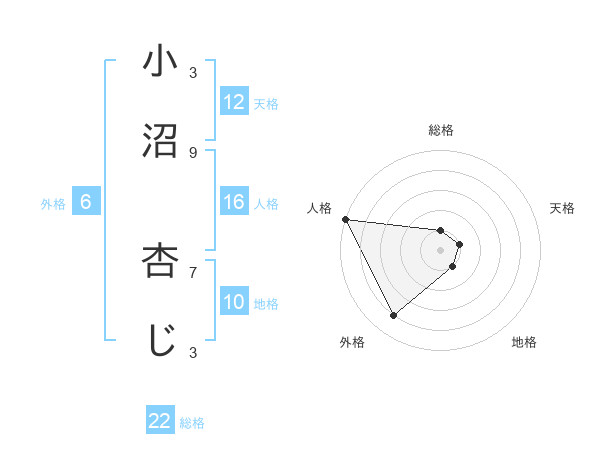 小沼 杏じさんを姓名の画数から五運を鑑定