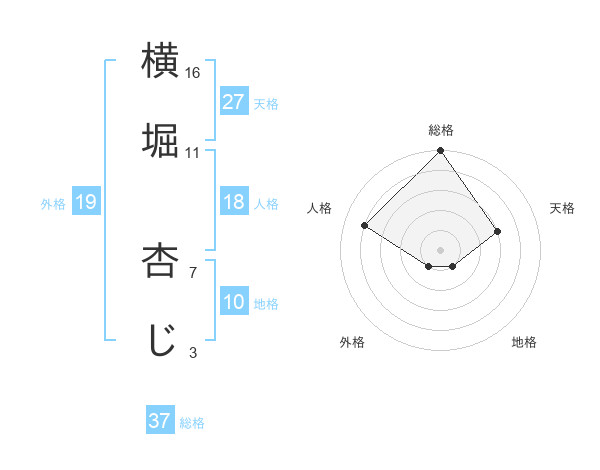 横堀 杏じさんの総格は37画の5点!