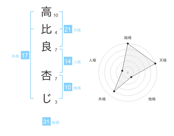 高比良 杏じさんを姓名の画数から五運を鑑定