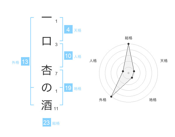一口 杏の酒さんを姓名の画数から五運を鑑定