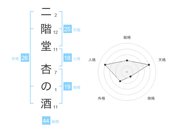 二階堂 杏の酒さんを姓名の画数から五運を鑑定