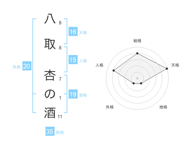 八取 杏の酒さんを姓名の画数から五運を鑑定