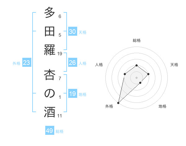 多田羅 杏の酒さんの外格は23画の5点!
