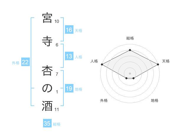 宮寺 杏の酒さんを姓名の画数から五運を鑑定