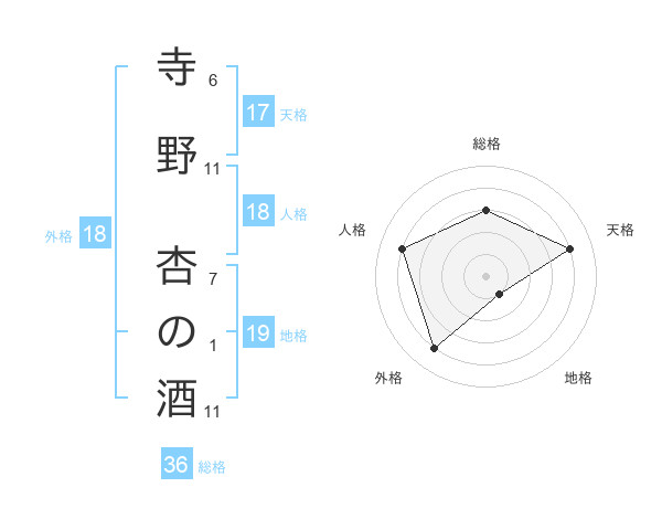 寺野 杏の酒さんを姓名の画数から五運を鑑定