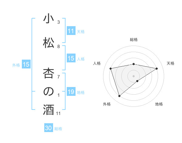小松 杏の酒さんを姓名の画数から五運を鑑定