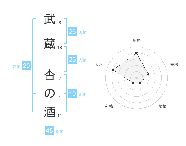 武蔵 杏の酒さんを姓名の画数から五運を鑑定
