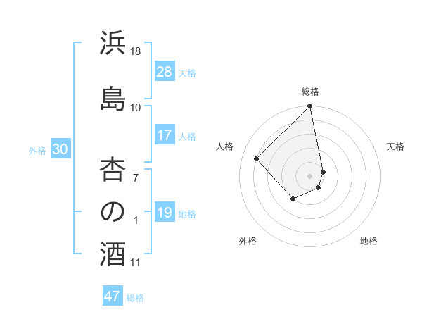 浜島 杏の酒さんの総格は47画の5点