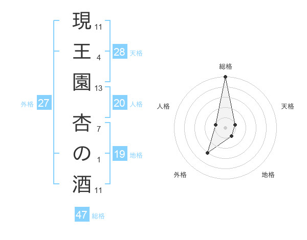 現王園 杏の酒さんを姓名の画数から五運を鑑定