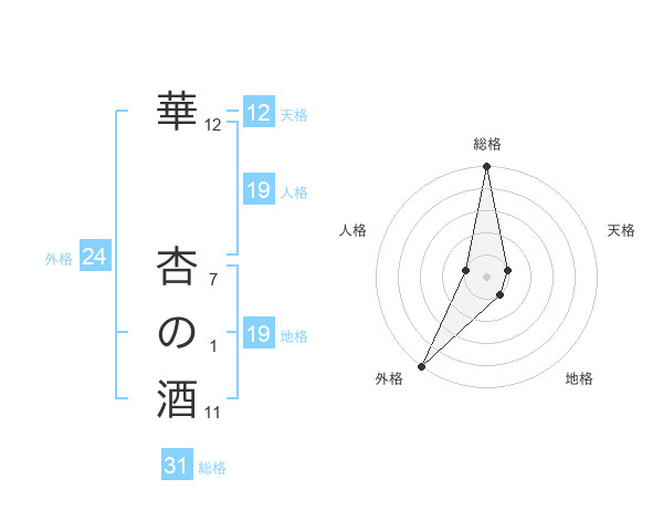 華 杏の酒さんを姓名の画数から五運を鑑定