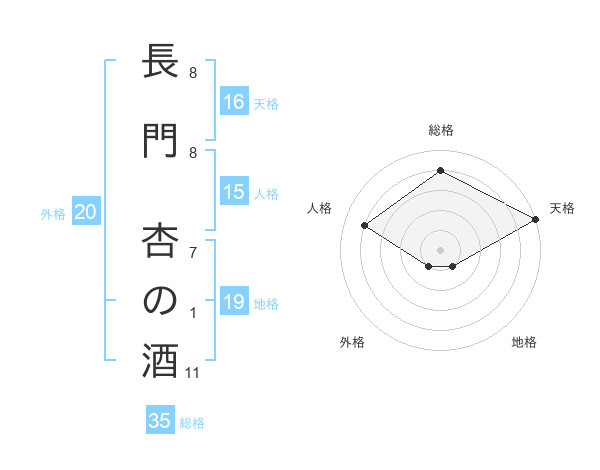長門 杏の酒さんを姓名の画数から五運を鑑定