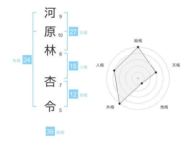 河原林 杏令さんを姓名の画数から五運を鑑定