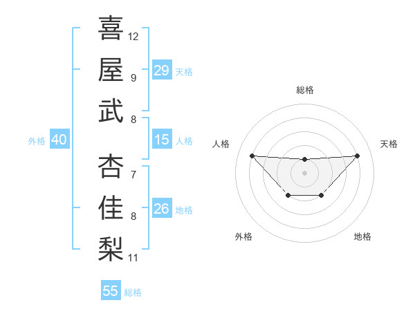 喜屋武 杏佳梨さんの総格は55画の1点!