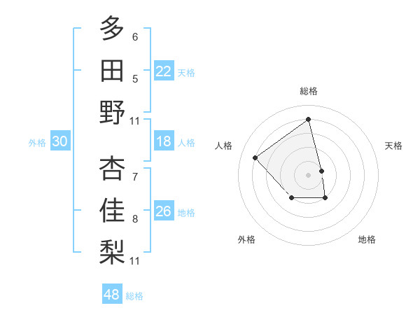 多田野 杏佳梨さんの総格は48画の4点!